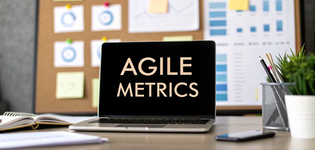 Agile metrics are data points teams use to get a real, unbiased look at their performance, predictability, and overall health. They're about swapping gut feelings for hard numbers, showing you exactly how work moves from an idea to a happy customer, how reliable your delivery schedule is, and where the hidden bottlenecks are slowing you down.